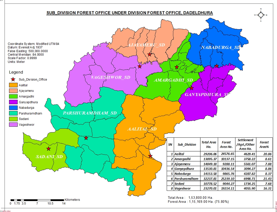 डिभिजन वन कार्यालय, डडेल्धुरा अन्तरगतको फिल्ड स्तरीय सब-डिभिजन वन कार्यालयहरु र समेटेको न.पा./गा.पा. हरु